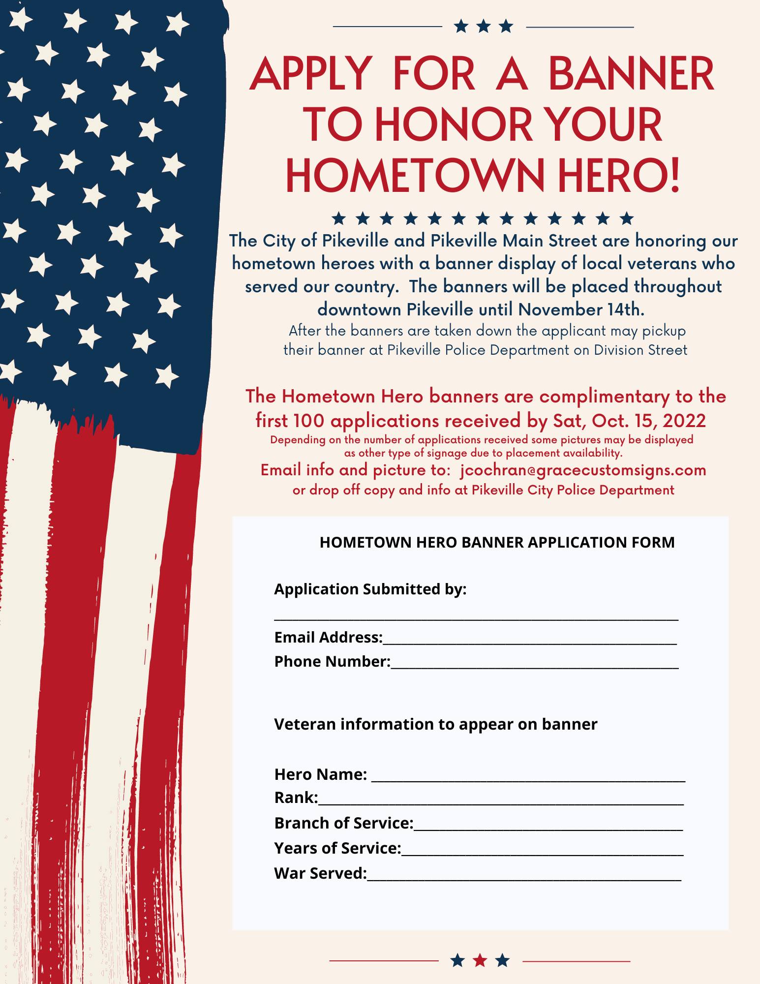 The City of Pikeville and Pikeville Main Street are honoring our hometown heroes with a banner display of local veterans who served our country. The banners will be placed throughout downtown Pikeville until November 14th.