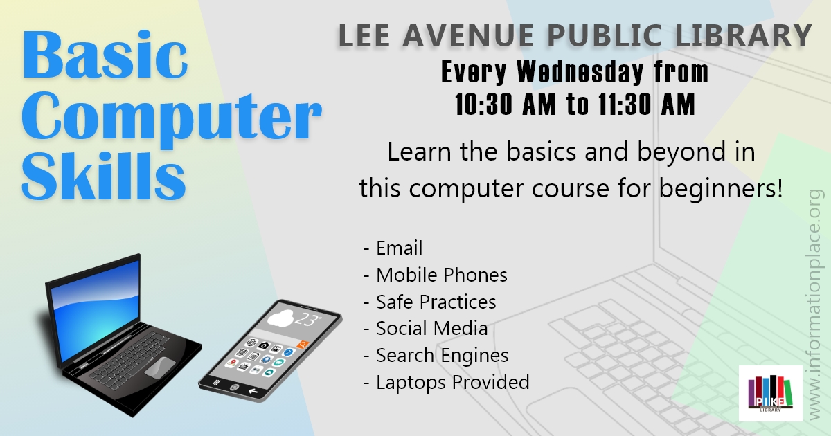 Learn basic computer skills at the Pike County Public Library! Classes are offered every Wednesday at 10:30 and will cover email, phones, tablets, tech lingo, resume and flyer creation, and more.