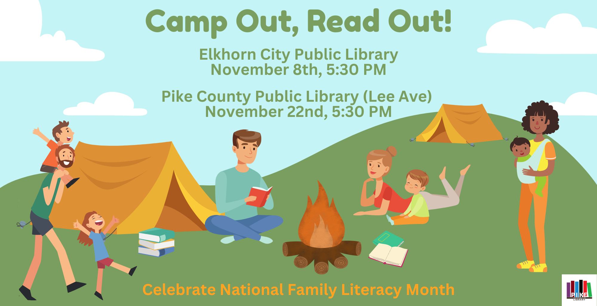 Celebrate National Family Literacy Month with a Camp Out, Read Out at the library! Participate in a camping themed read aloud then choose selected favorite books to read with your family around an indoor “campfire.”