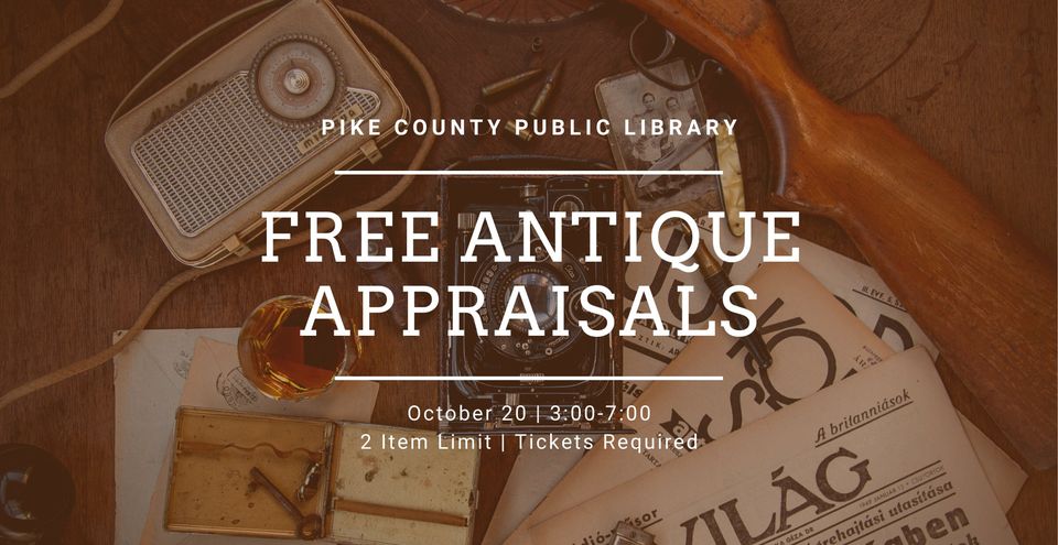 Have something that is worth something? Find out at the Pike County Public Library Free Antique Appraisals event on Thursday, October 20 from 3:00-7:00.