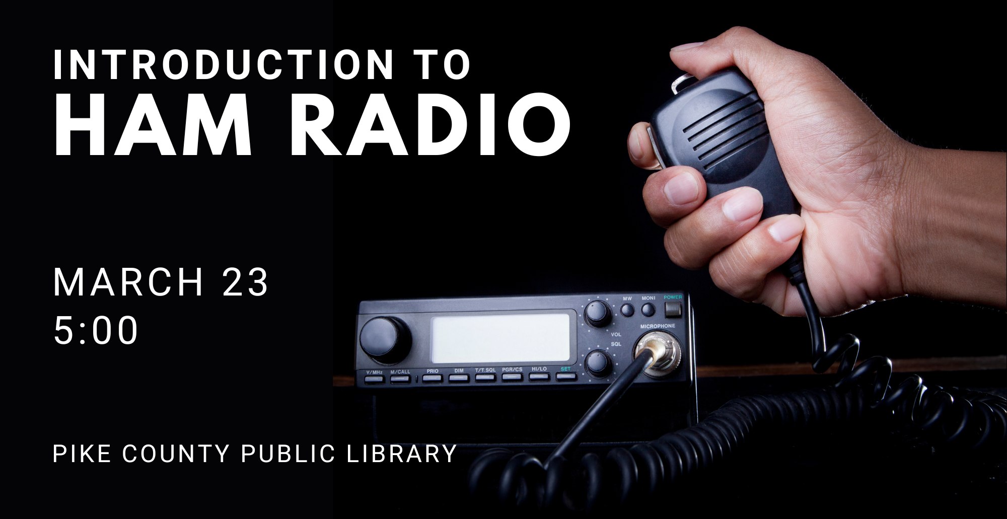 Introduction to Ham Radio will be held at the Pike County Public Library (Lee Ave) on March 23rd at 5:00.