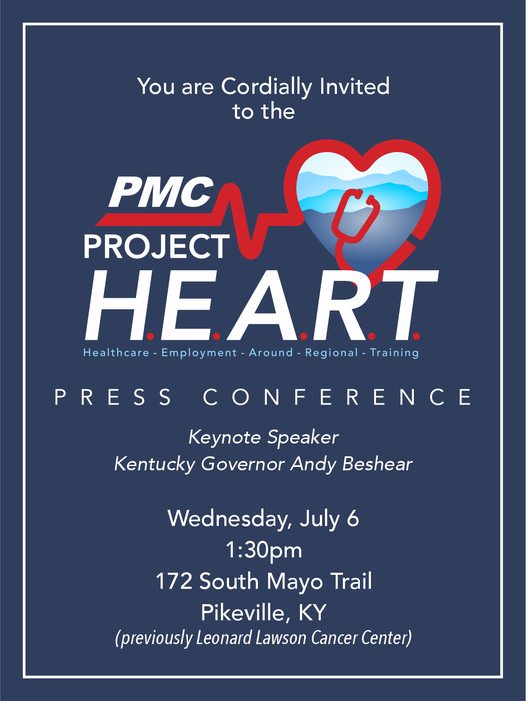 Pikeville Medical Center will hold a press conference with Governor Andy Beshear as Keynote Speaker on Wednesday, July 6th at 1:30 pm. They will be making announcements as to the healthcare training, education, workforce development, and recruitment investments for this region.