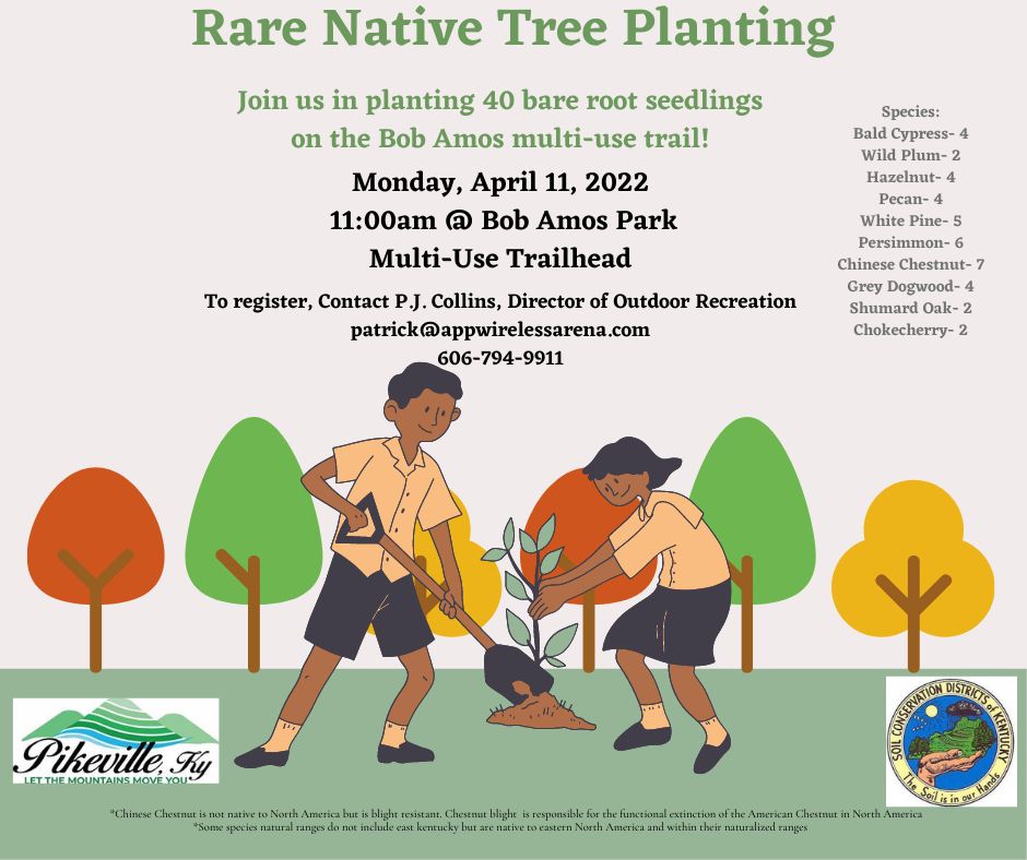 Join us on April, 11th!!! As a community, trail users will be able to watch the yearly growth and development of these seedling trees