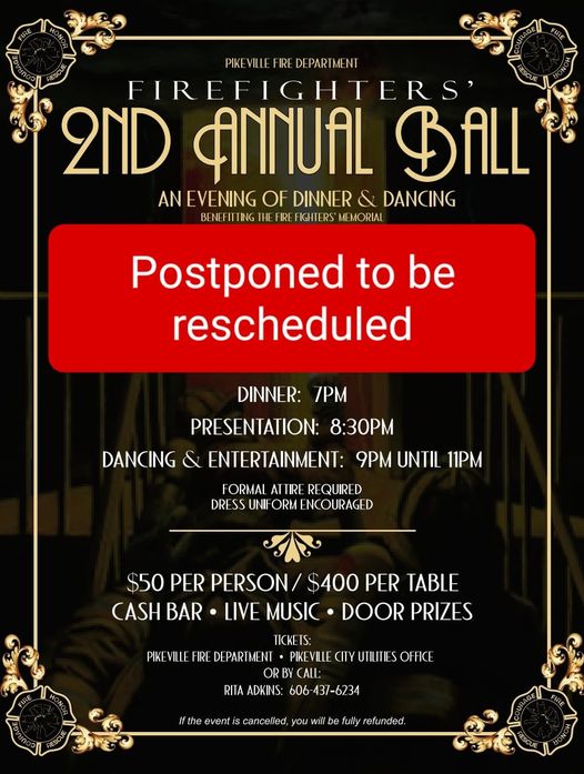 The Pikeville Fire Department second annual Firefighters’ Ball will be held at The Overlook Event’s Center on Friday, October 7th at 6pm. We would like to invite everyone to join us for this event! All proceeds will go toward the Firefighters’ Memorial. If you are interested in purchasing a ticket or sponsorship, you can visit […]