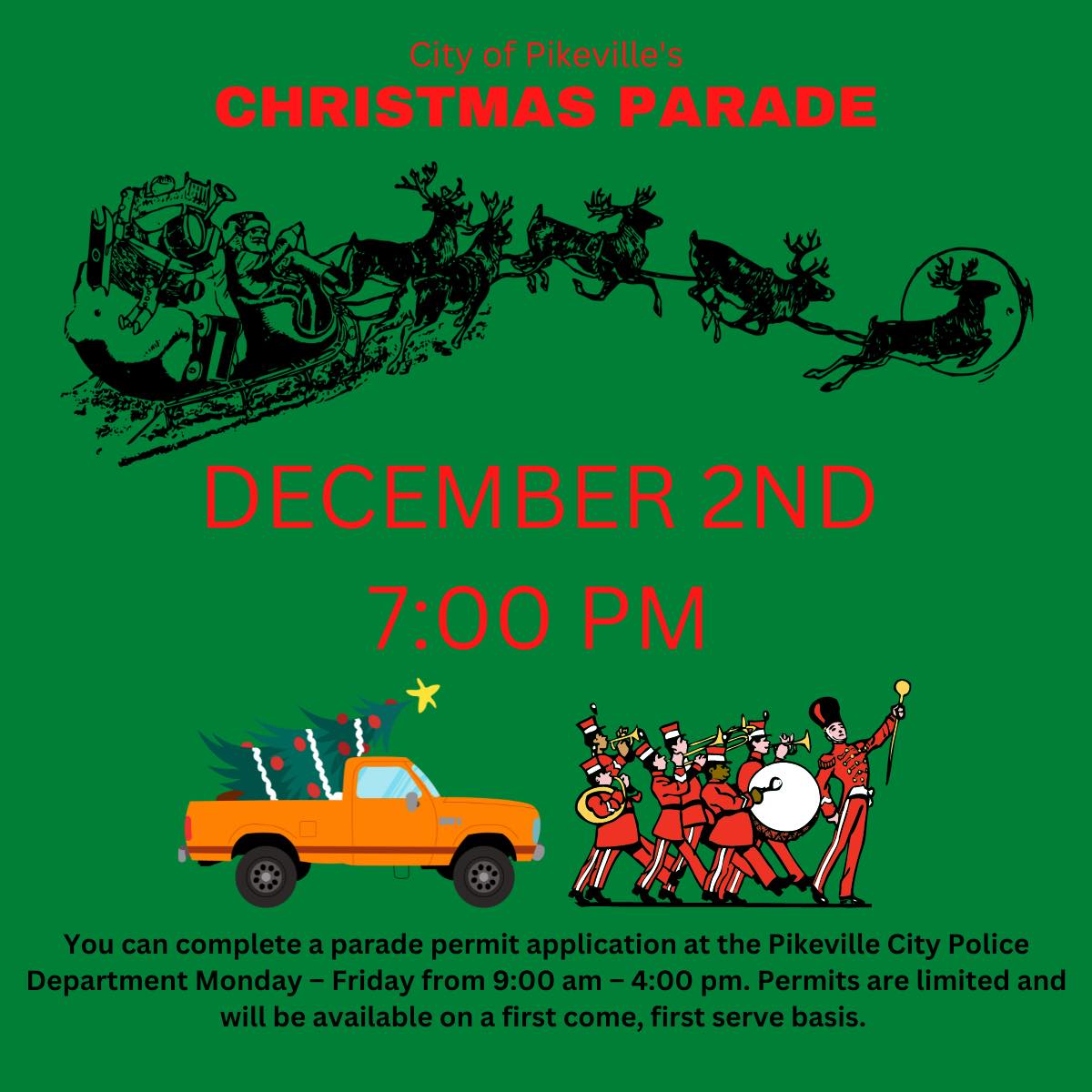 The City of Pikeville’s Annual Christmas Parade will be December 2nd at 7:00 PM. If you’d like to participate in the parade permit applications can be picked up at the Pikeville City Police Department Monday through Friday from 9:00 AM to 4:00 PM. #visitpikeville #christmasparade