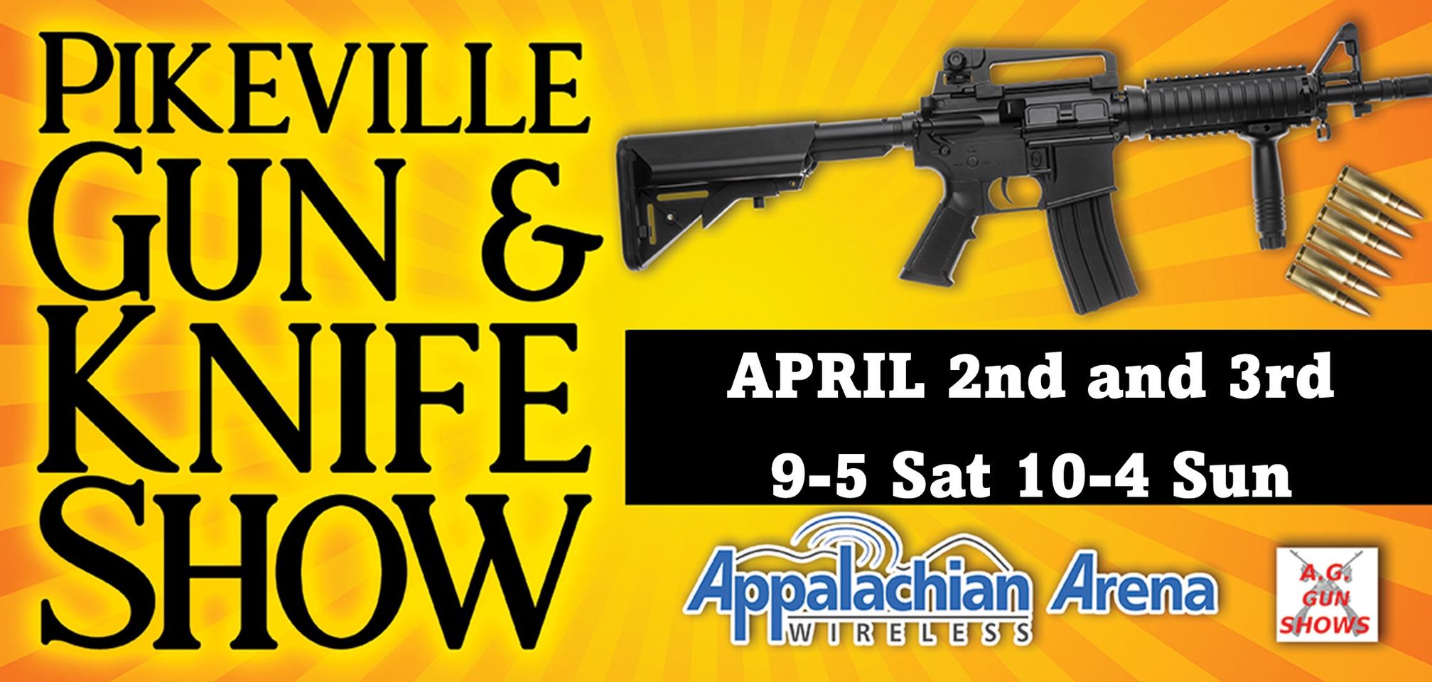 Just Announced! April 2nd and 3rd 9-5 Sat 10-4 Sunday Ages 12 and under FREE with adult ticket purchase $9 tickets The Pikeville Gun & Knife Show will be held on Apr 2nd-3rd, 2022 in Pikeville, KY. This Pikeville gun show is held at Appalachian Wireless Arena and hosted by A.G. Gun Shows. All federal, […]