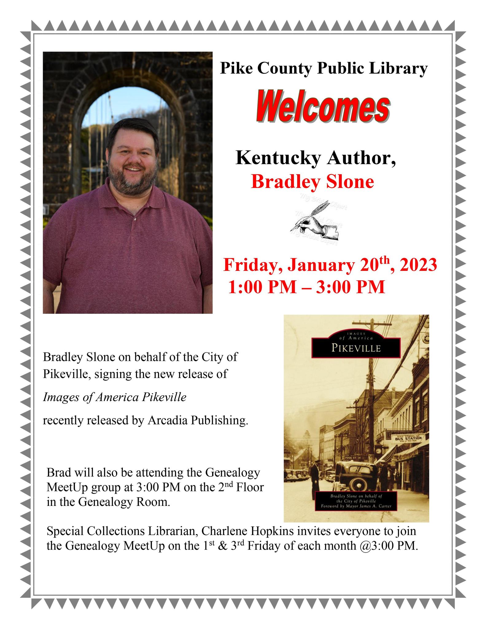 Local author Bradley Slone will visit the Pike County Public Library on January 20th from 1:00-3:00 with copies of his new book, “Images of America: Pikeville.”