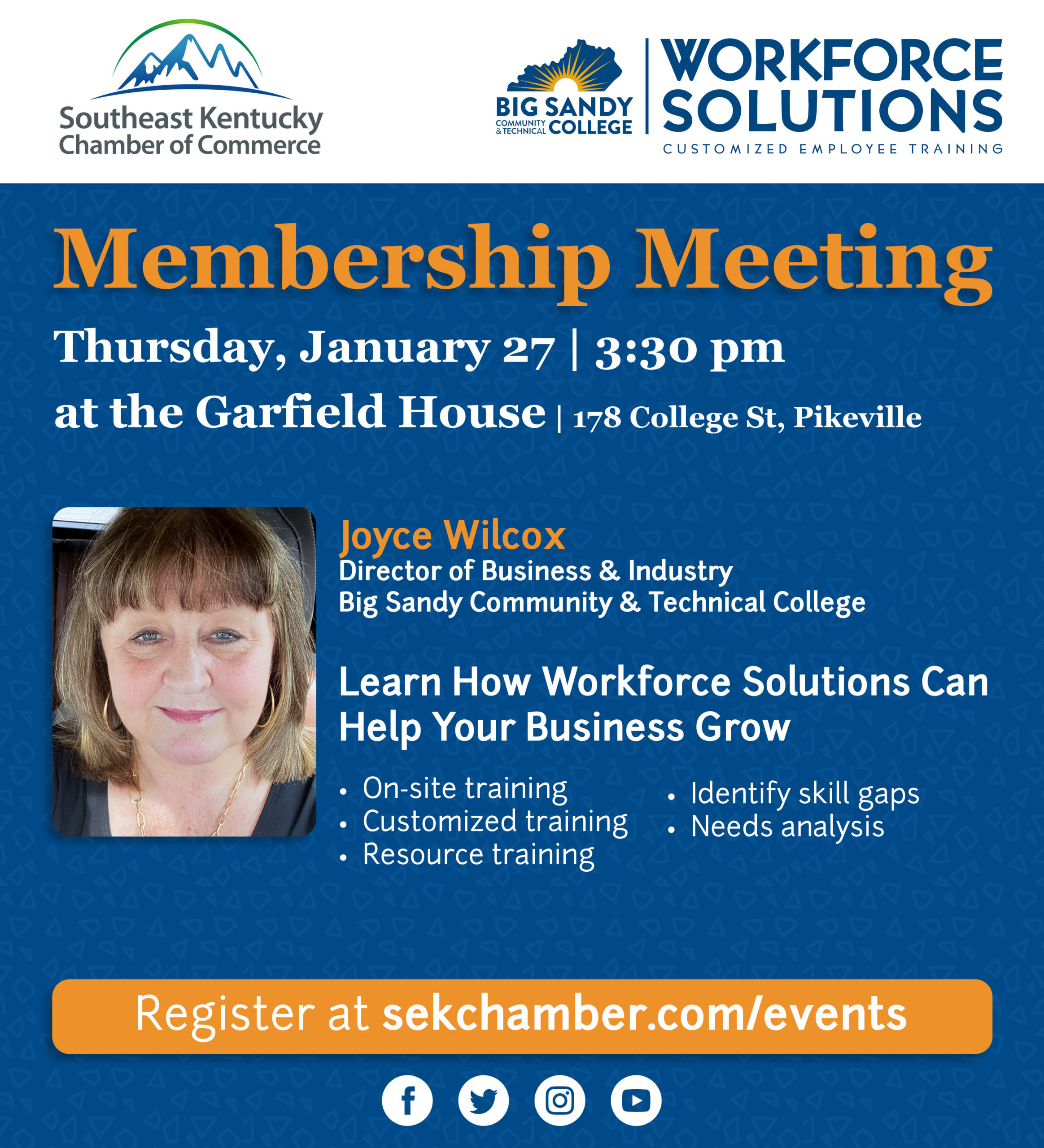 Join the Southeast Chamber of Commerce for a discussion with Joyce Wilcox, director of business and industry at Big Sandy Community and Technical College. Joyce will discuss the Workforce Solutions […]