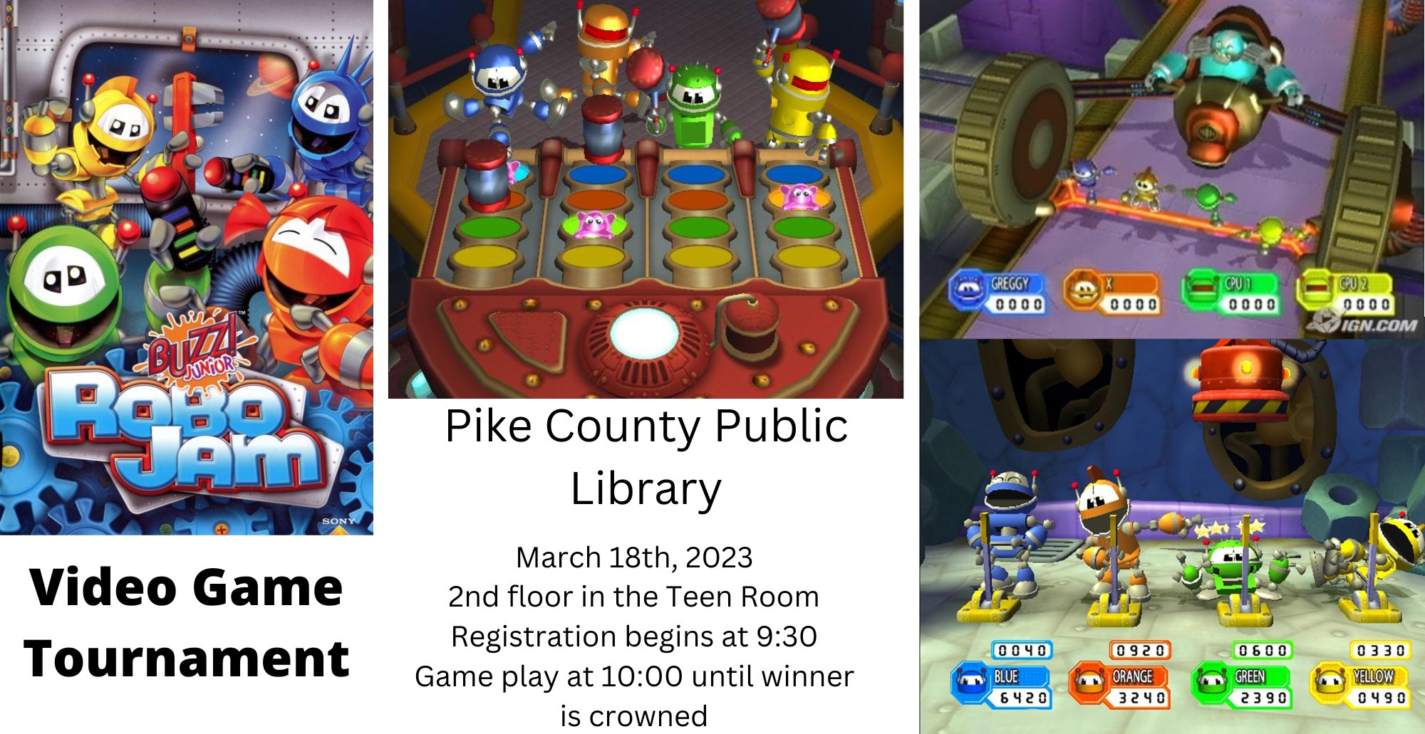 Ages 13 and up join us for a Buzz! Junior: Robo Jam tournament at the Pike County Public Library (Lee Avenue) on Saturday, March 18th. Sign up begins at 9:30 with game play starting at 10:00. This program will be held in the Teen Room on the second floor of the library.
