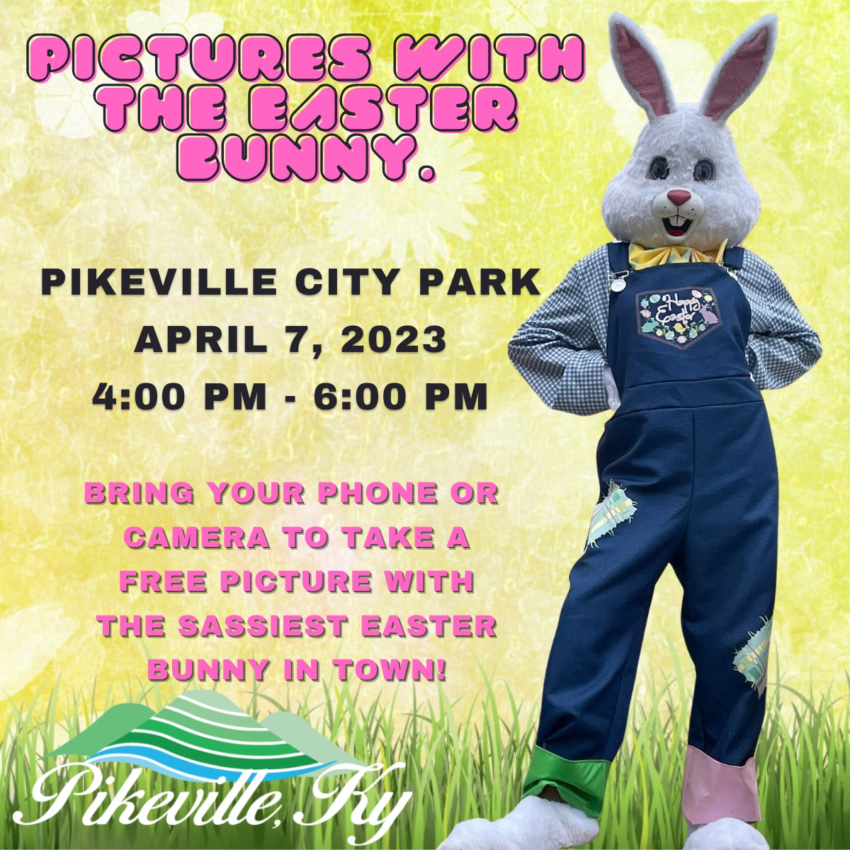 Who’s ready for the Sassiest Easter Bunny in town? Come visit her in the Pikeville City Park on Friday, April 7th from 4:00 PM to 6:00 PM and take a quick pic! We promise you won’t be disappointed. #visitpikeville #sassybunny